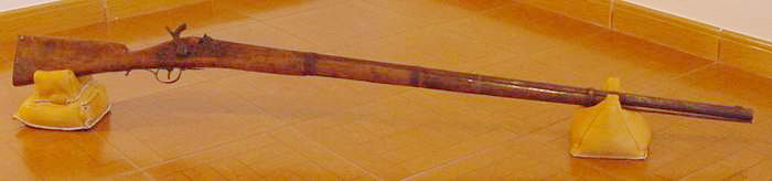 boca Além da utilização de armas artesanais, designadas então por "canhangulos" (espingardas artesanais compostas por uma coronha de madeira e um cano de ferro comprido - por vezes tubos de canalização, que eram carregadas pela boca com pólvora e projecteis vários - usados tipicamente para caça pelos nativos), foram também usados, numa fase inicial do conflito, mosquetes do séc. XIX (ou com tal configuração, mas de fabrico "doméstico" contemporâneo) como arma por parte dos movimentos de guerilha. Ao usarem como munição pedaços de metal e sucata (parafusos, restos de ferramentas partidas, etc.) ou mesmo pedras, o efeito destruidor destas armas a curta distância era apreciável e temido, provocando ferimentos dilacerantes de grande gravidade. Cedo, porém, os movimentos de guerilha, passaram a contar com carabinas e metralhadoras de fabrico soviético e abandoram estas armas de menor prestação que apenas os assistiram em momentos muito preliminares do conflito. Fica, ainda assim, o registo fotográfico e histórico, abaixo, de um mosquete apreendido.