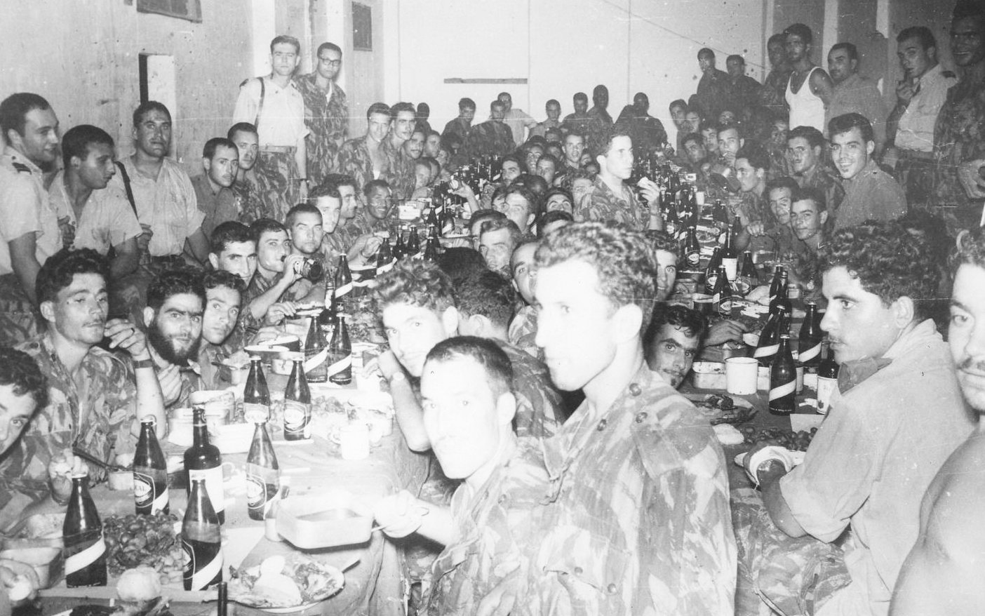 1.º Cabo Graça (à dir.ª) e o 1.º Cabo Álvaro Costa. Refeição nas imediações de Sasso