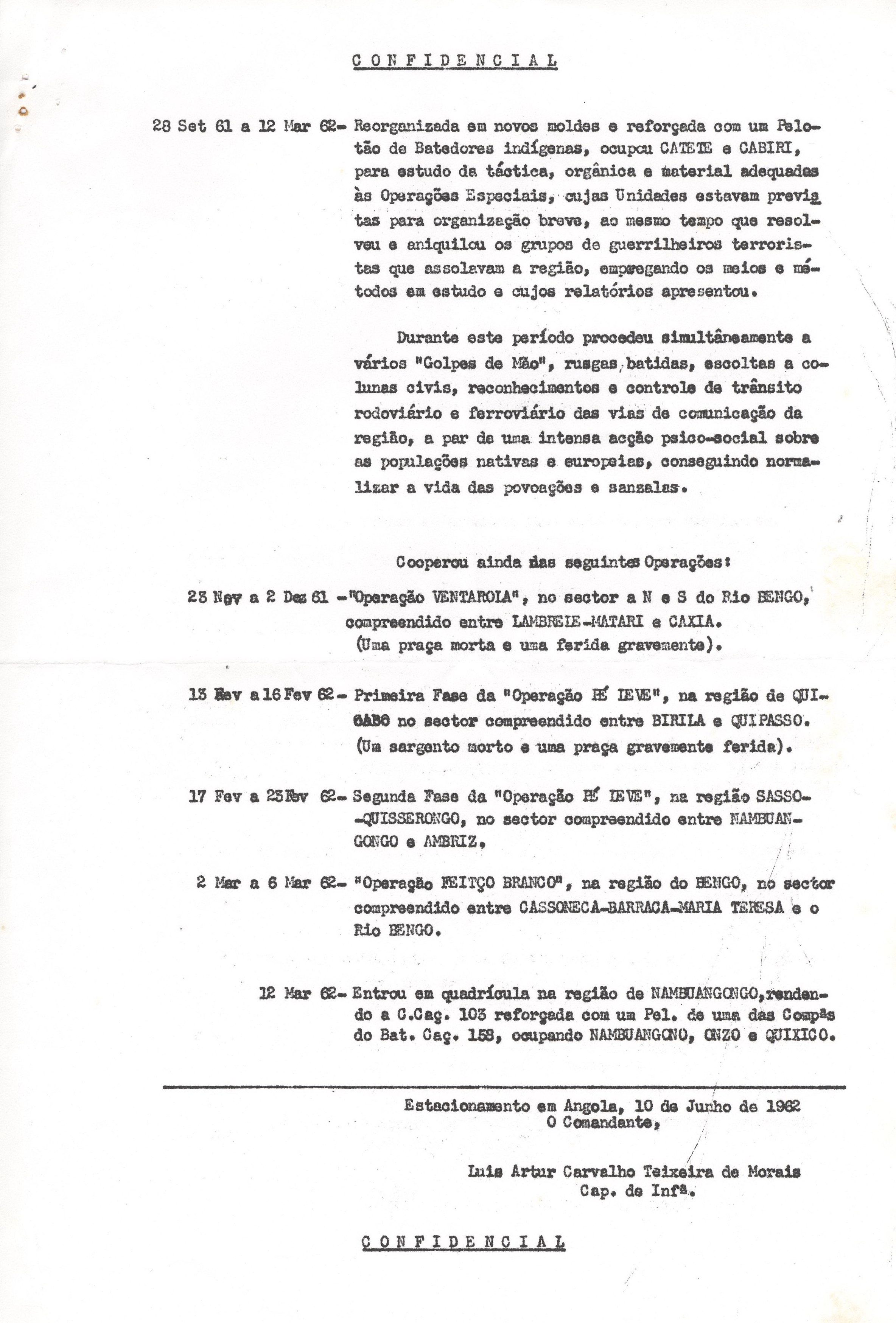 Original datado de 10 de Junho de 1962.Assinado pelo Cap. de Inf.ª Luis Artur Carvalho Teixeira de Morais. Gentilmente cedido pelo mesmo para a presente reprodução.